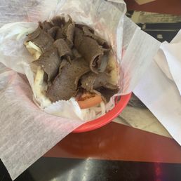 Really close to my house, I like going here when I crave chicken. It's clean, but old, but the cashier is very nice and helps explain the different Greek foods on the menu. I got the Greek chicken dinner, which includes a choice of coleslaw or soup, slice of garlic bread, two potatoes, rice, and half a chicken. Chicken has the right amount of lemon and spices, very savory and juicy, the best Greek chicken in Chicago! I tried the gyro and it was ok. It could have more bread in the meal. The burger was also only ok. It could have been more seasoned and juicier. Overall very affordable for the Greek chicken dinner, bc it was about $15 for half a chicken with a ton of sides. It's so big that you can save it for another meal!