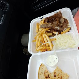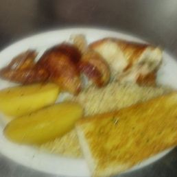 Good chicken and ricw and greek potatoes. Feesh and hot Flavor jyst right and tasty and nice pwople
